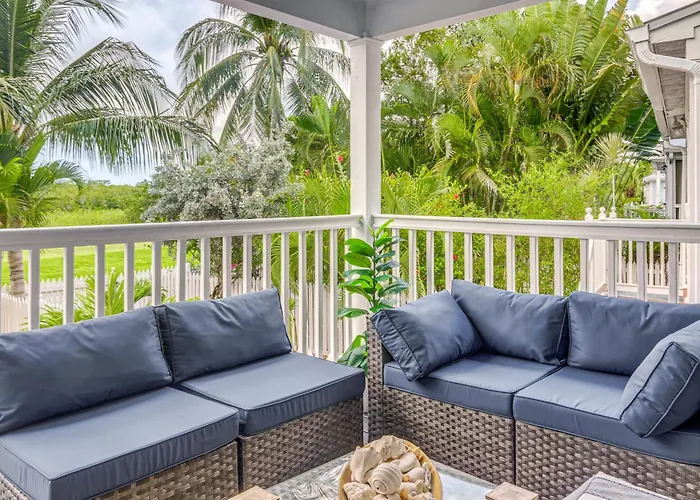 Situated only a 5-minute walk from the Key Haven, the welcoming Golf Course Oasis With Private Yard, 5 Mi To Duval! Villa Key West invites guests to relax at a patio.